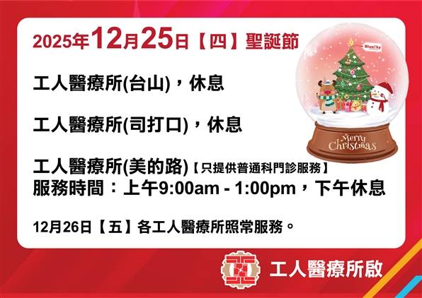 聖誕節假期通告